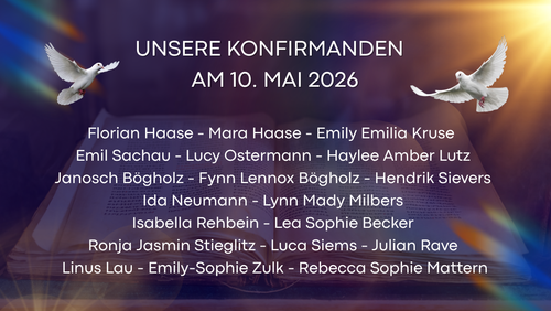 Am Sonntag, den 10. Mai 2026, um 11.00 Uhr möchten wir gemeinsam mit unseren Konfirmandinnen und Konfirmanden diesen besonderen Schritt im Glauben feiern.
